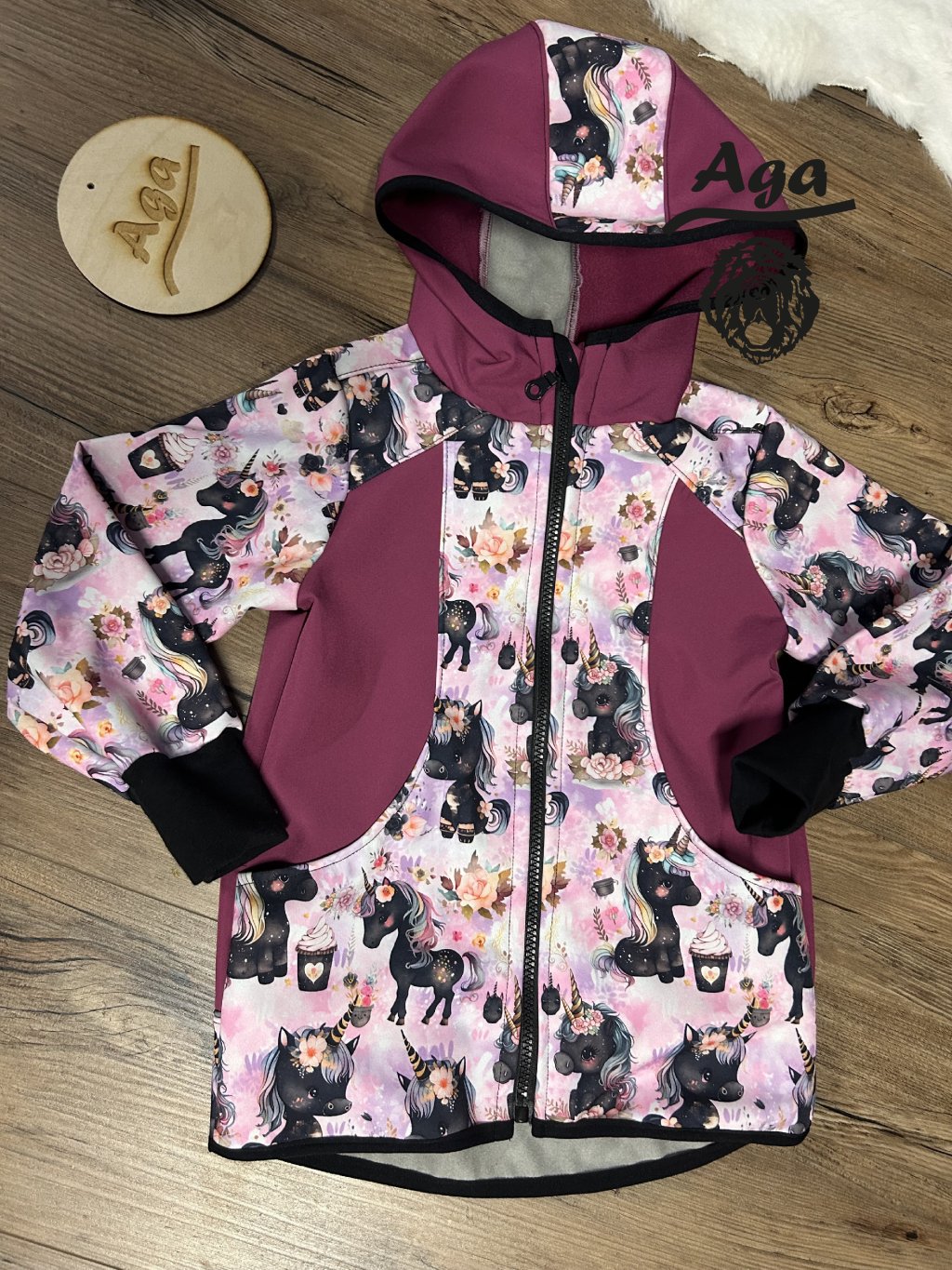 Softshell bunda černý jednorožec FLEECE