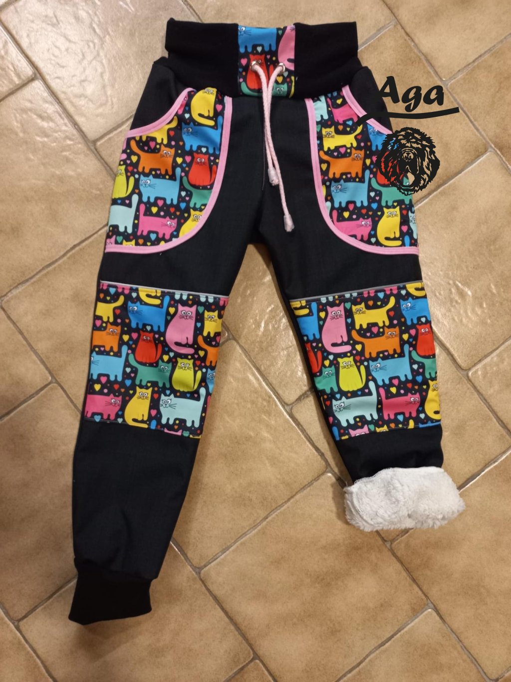 Softshell kalhoty barevné kočky na černé - BERÁNEK