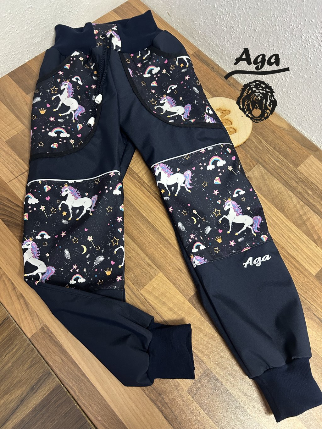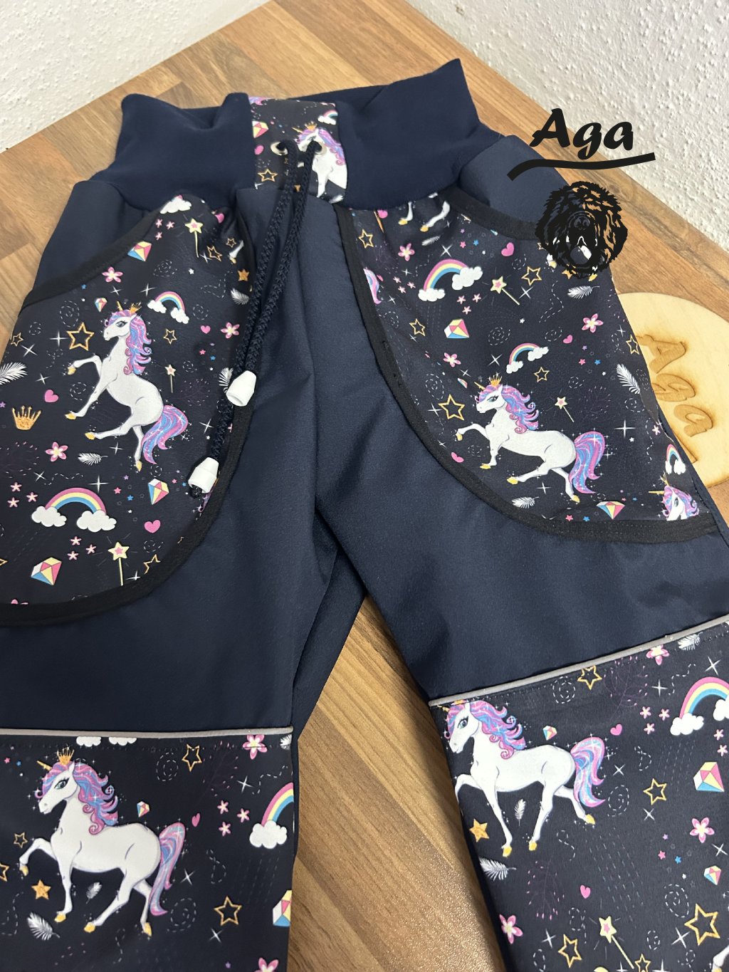 Softshell kalhoty jednorožec s duhou na tmave modré - LETNÍ