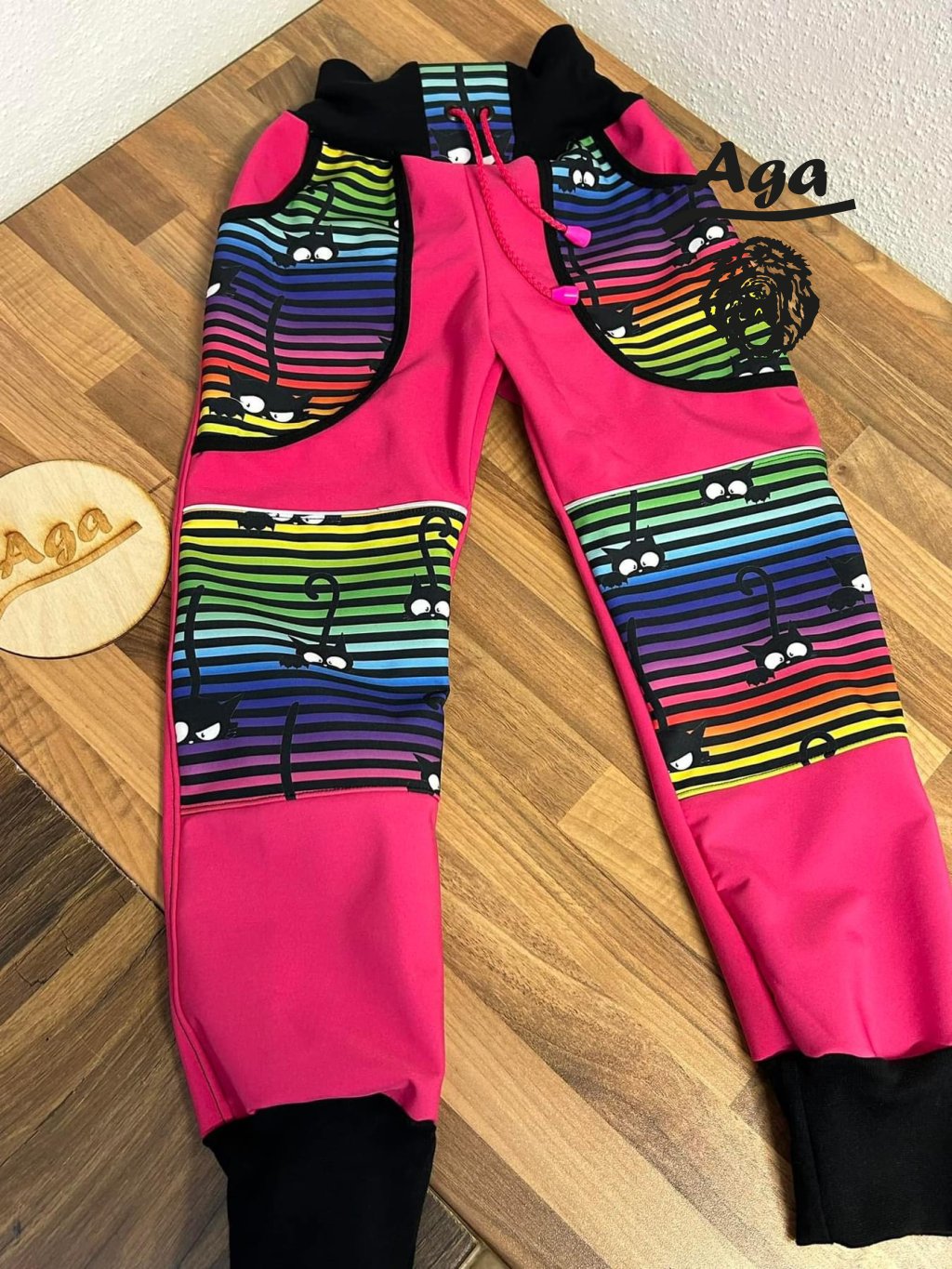 Softshell kalhoty kočky na proužku růžové - FLEECE