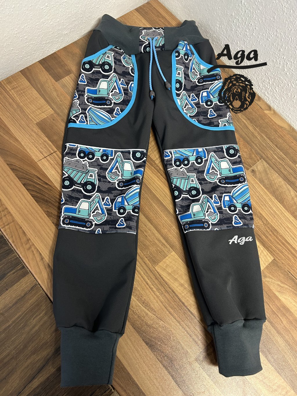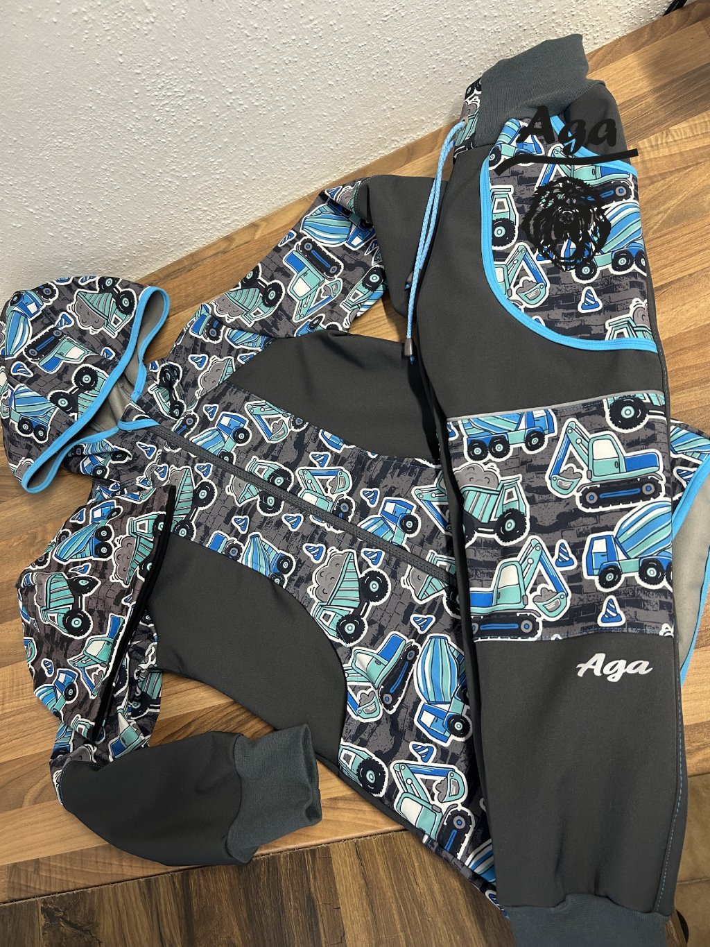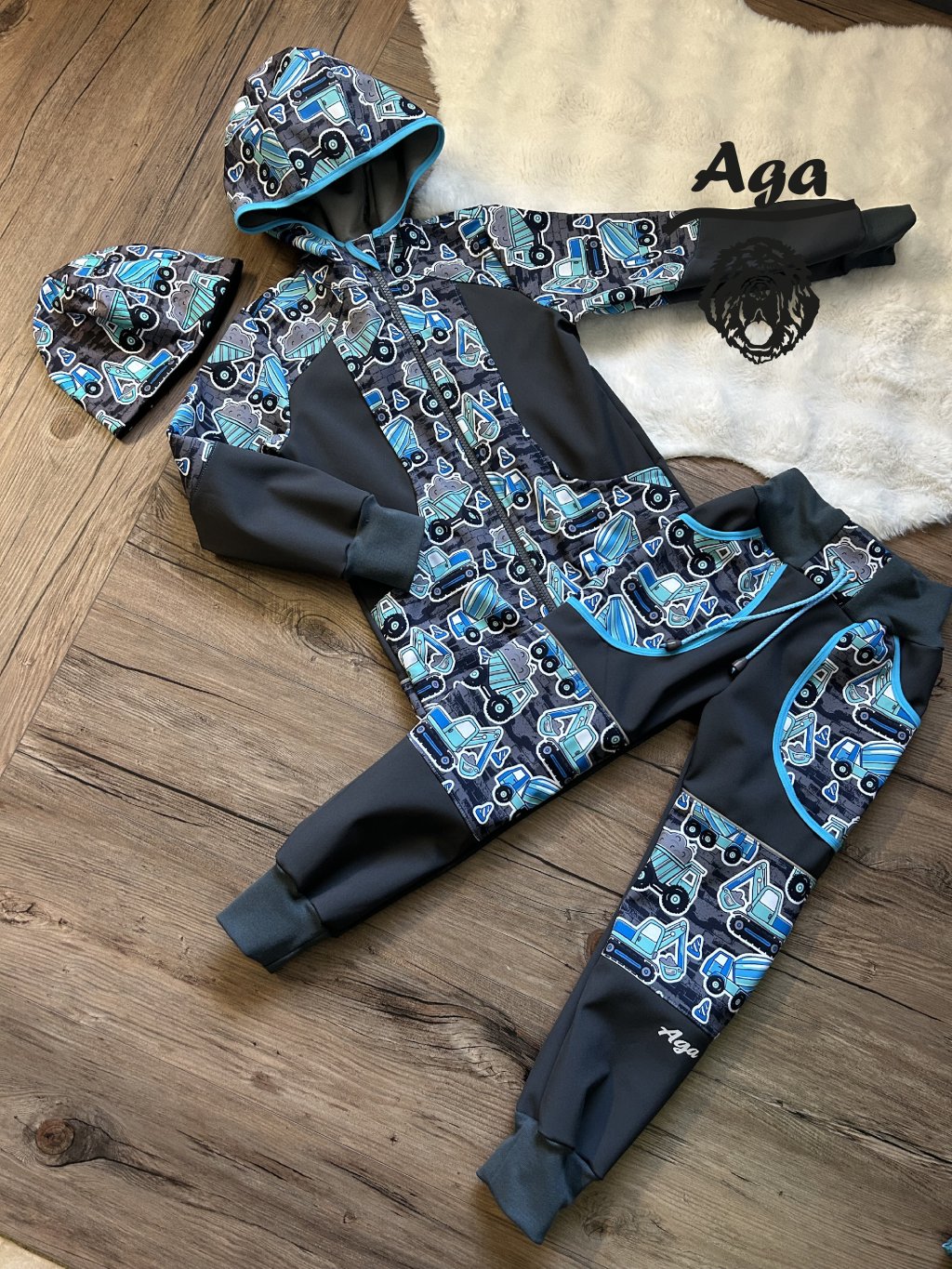 Softshell kalhoty modré stavební stroje šedý základ - FLEECE