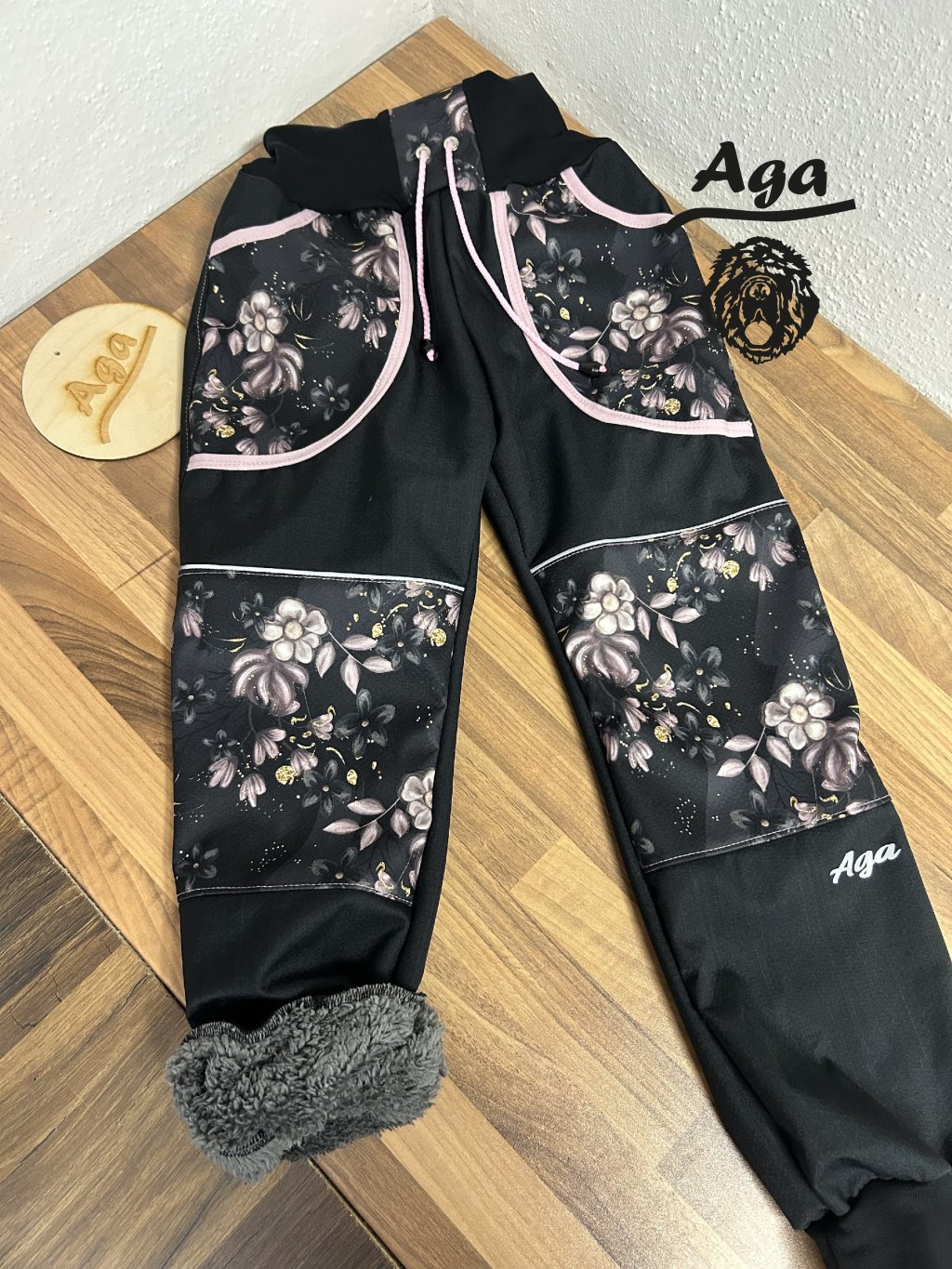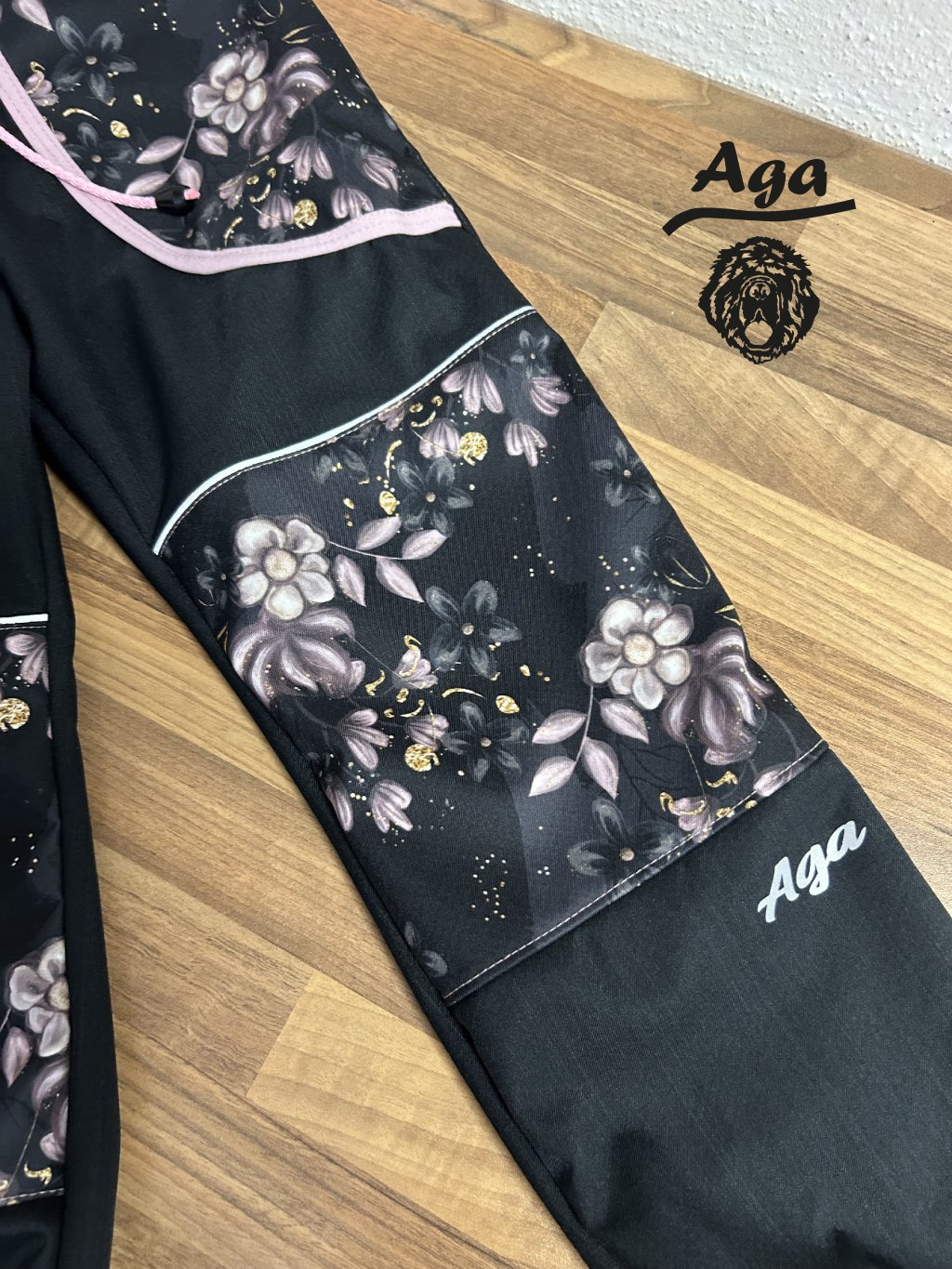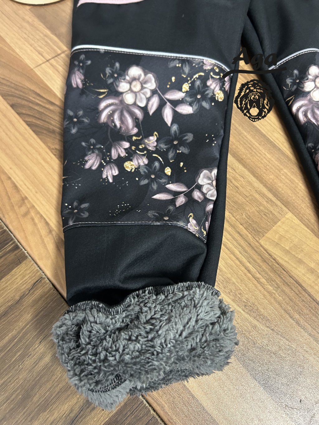 Softshell kalhoty růžové květy na černé - BERÁNEK
