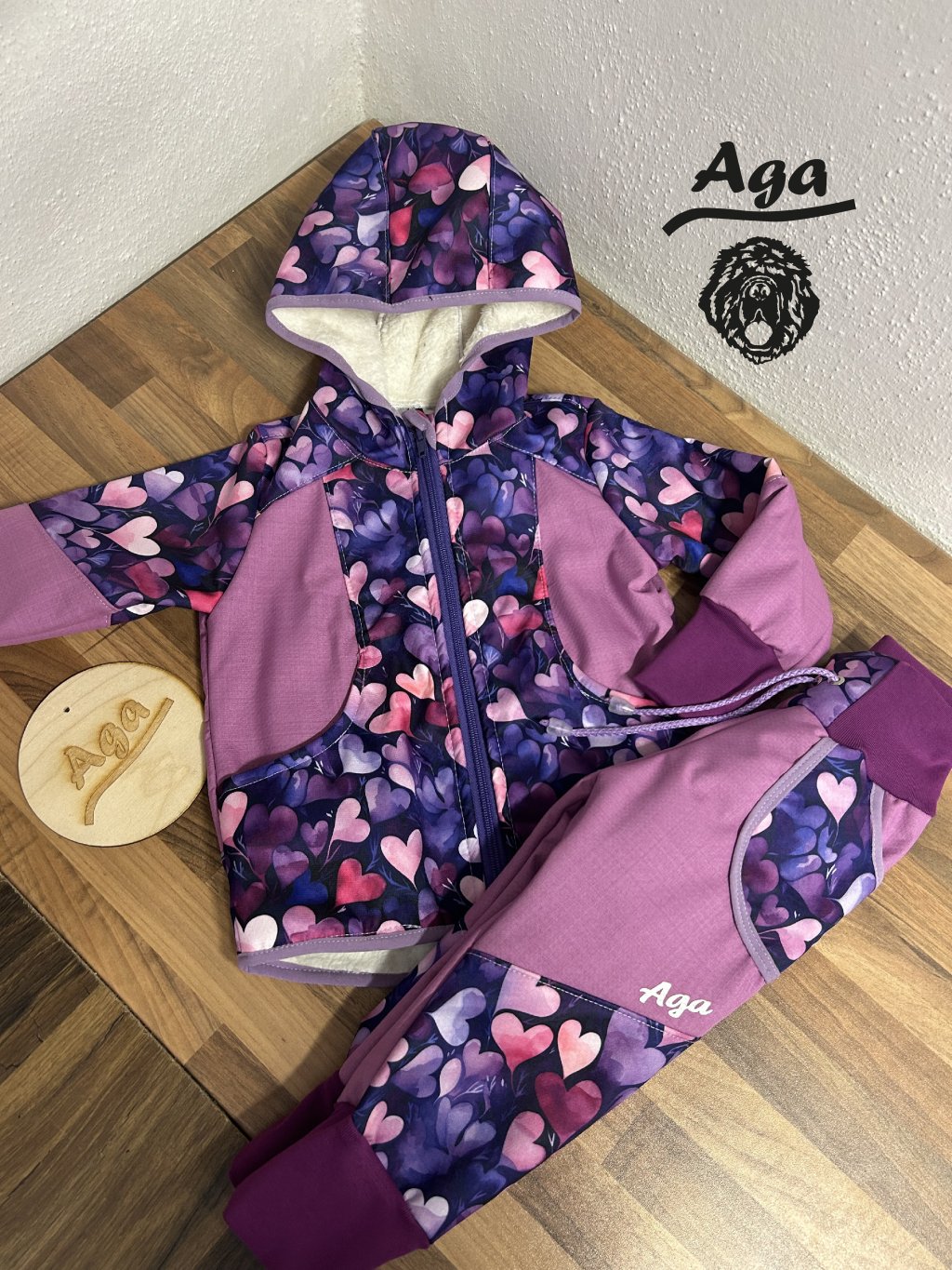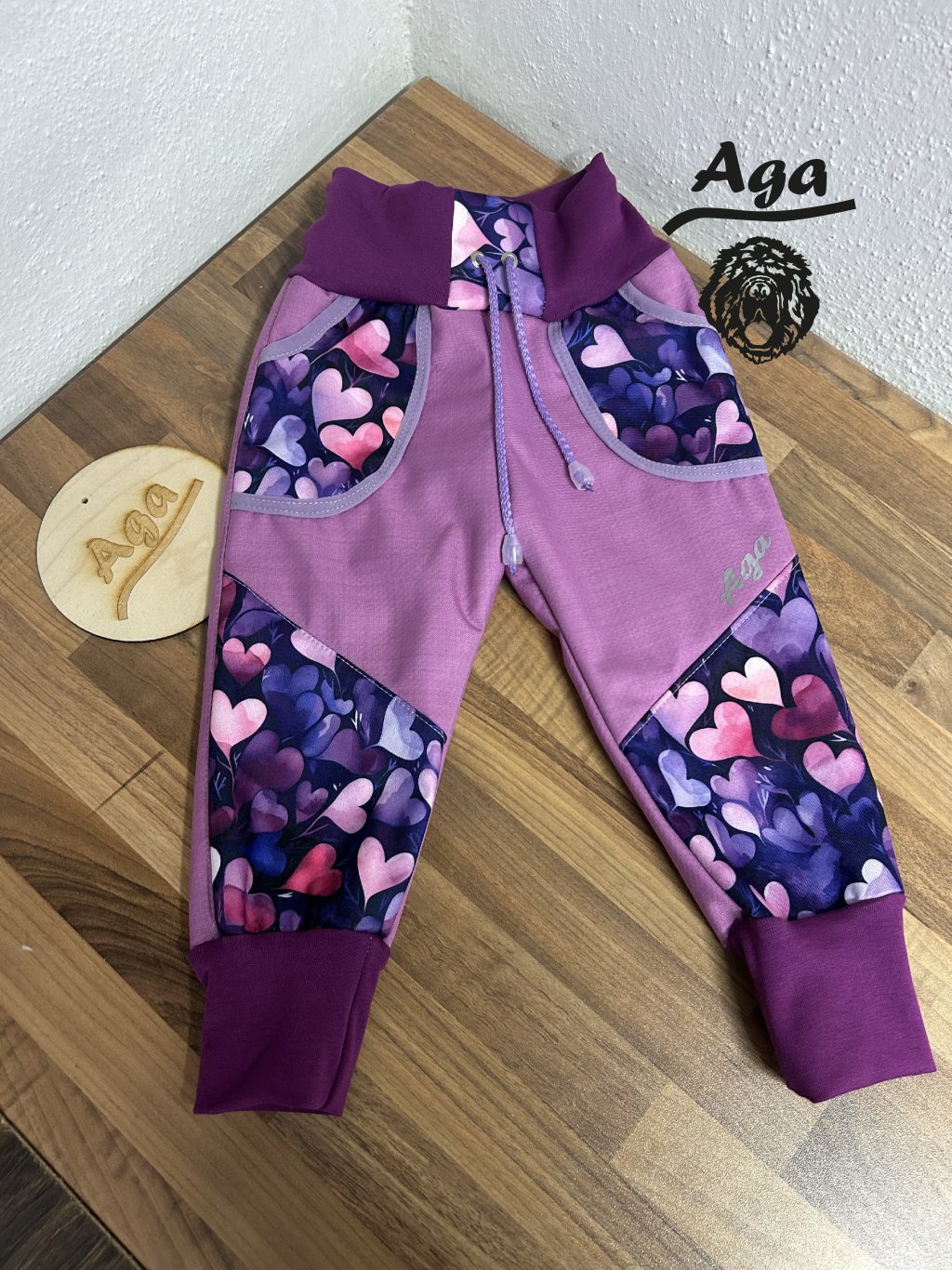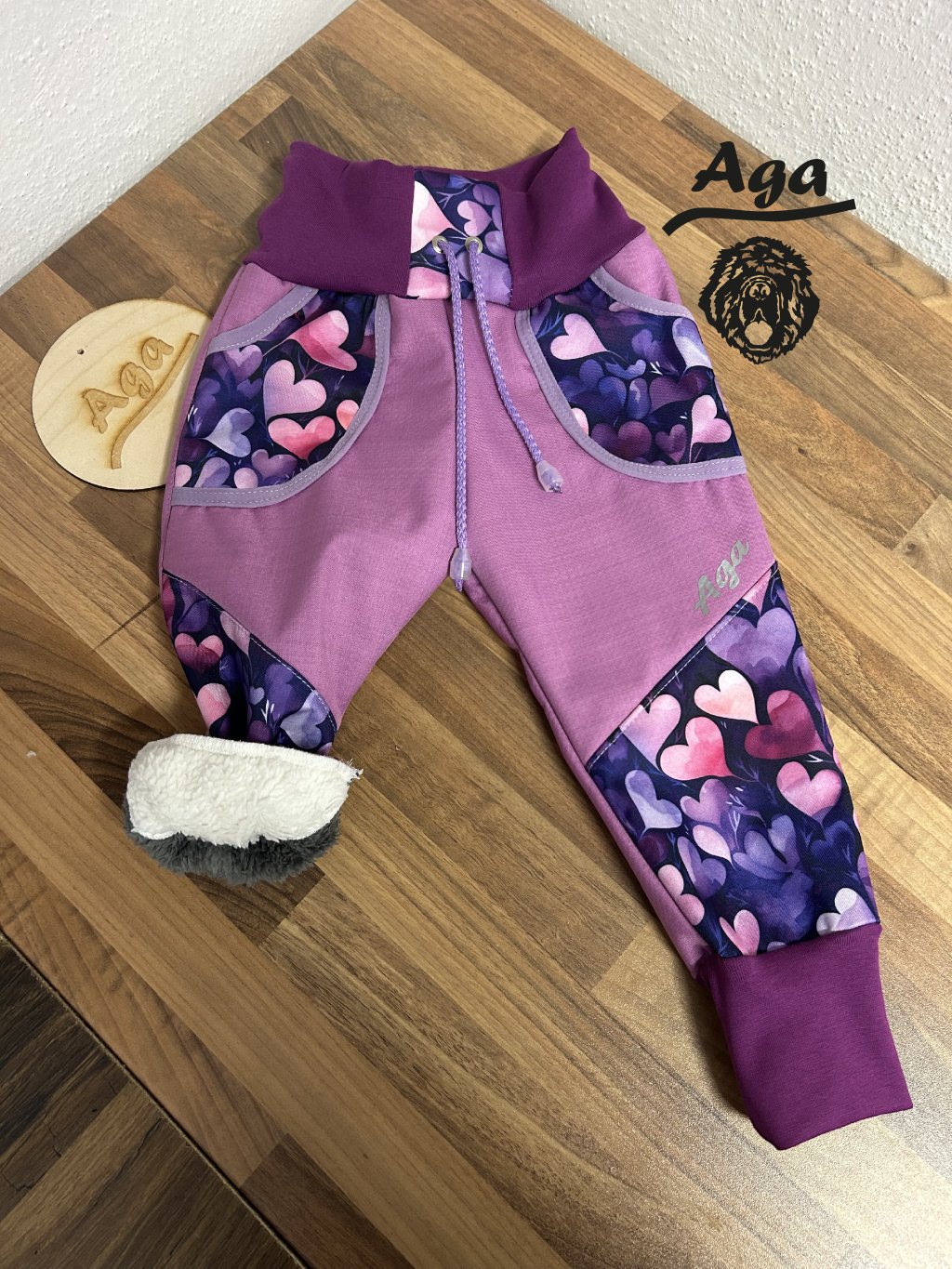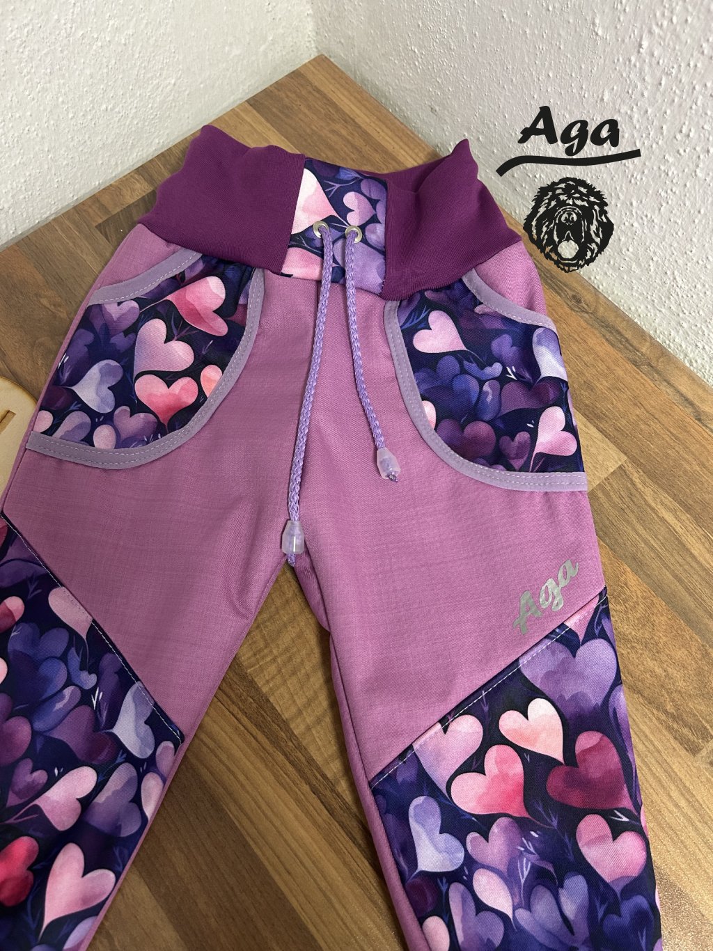Softshell kalhoty srdíčka na růžovofialové - BERÁNEK
