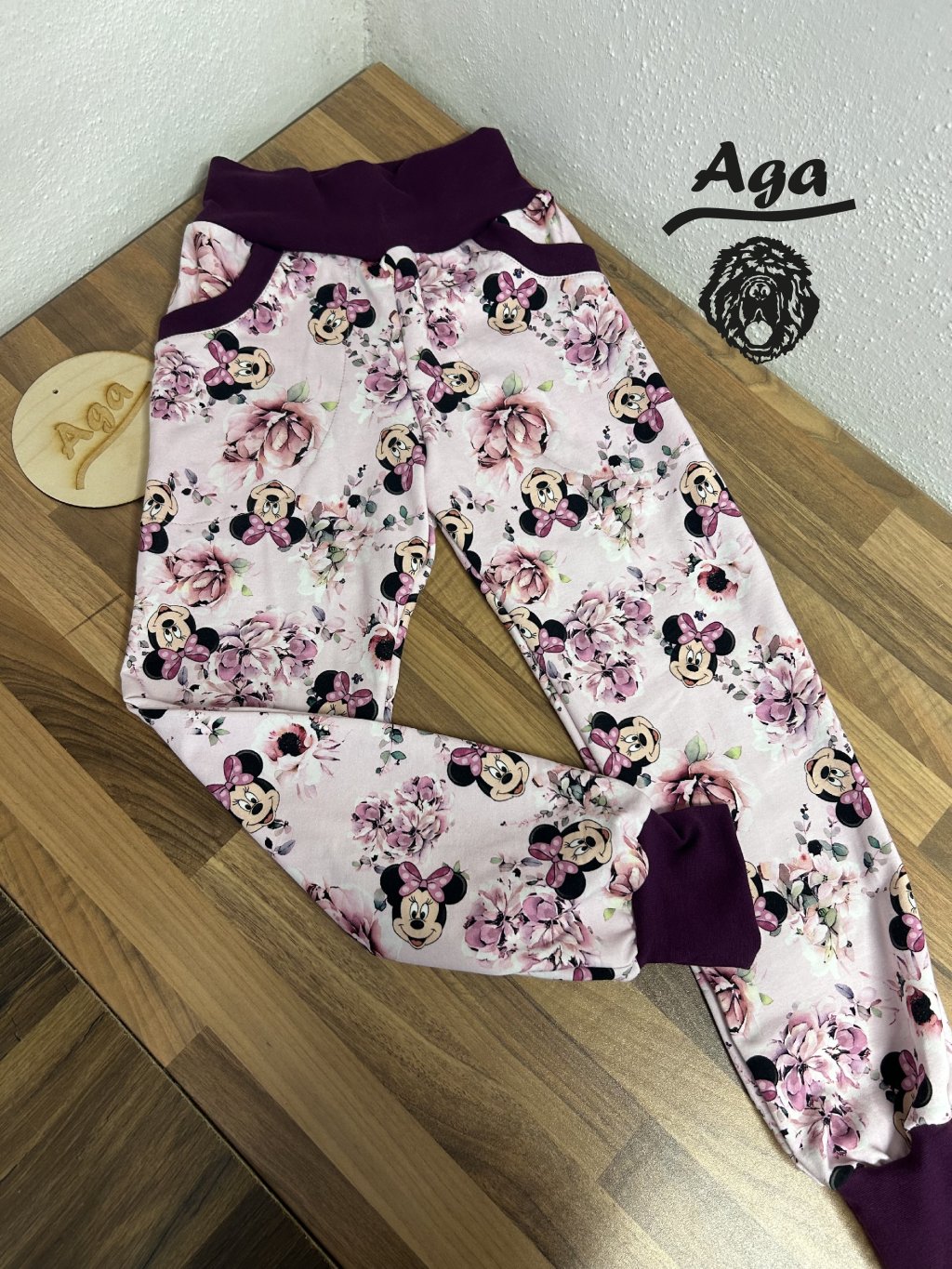 Tepláky - růžová myška s květy